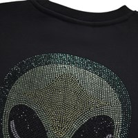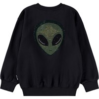 Schwarzer Sweatshirt aus weicher Öko-Baumwolle mit einem Pailletten-Alien vorne und hinten. Der Sweatshirt hat gerippte Abschlüsse am Hals, an den Ärmeln und am Saum. Der Sweatshirt hat eine lockere Passform.