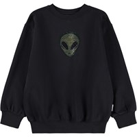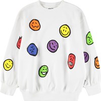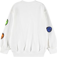 Weißer Sweatshirt aus weicher Öko-Baumwolle mit bunten Gesichtern. Der Sweatshirt hat gerippte Kanten am Hals, an den Ärmeln und am Saum. Der Sweatshirt hat eine lockere Passform.