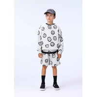 Off-White-Sweatshirt aus weicher Öko-Baumwolle mit einem Druck von Gesichtern in verschiedenen Stimmungen. Das Sweatshirt hat gerippte Kanten am Hals, an den Ärmeln und am Saum. Das Sweatshirt hat eine lockere Passform. Kombinieren Sie es mit den passenden Shorts.