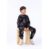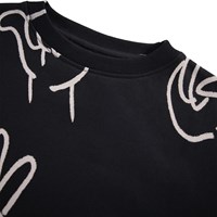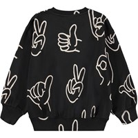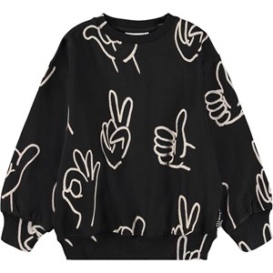 Schwarzer Sweatshirt aus weicher Öko-Baumwolle mit weißen Handzeichen bedruckt. Der Sweatshirt hat gerippte Kanten am Hals, an den Ärmeln und am Saum. Der Sweatshirt hat eine lockere Passform.