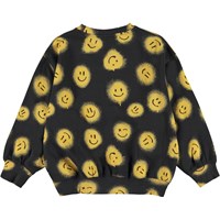 Monti ist ein Unisex-Sweatshirt in Schwarz mit einem Aufdruck aus gelben Smileys. Kombinieren Sie das Sweatshirt mit der passender Hose.