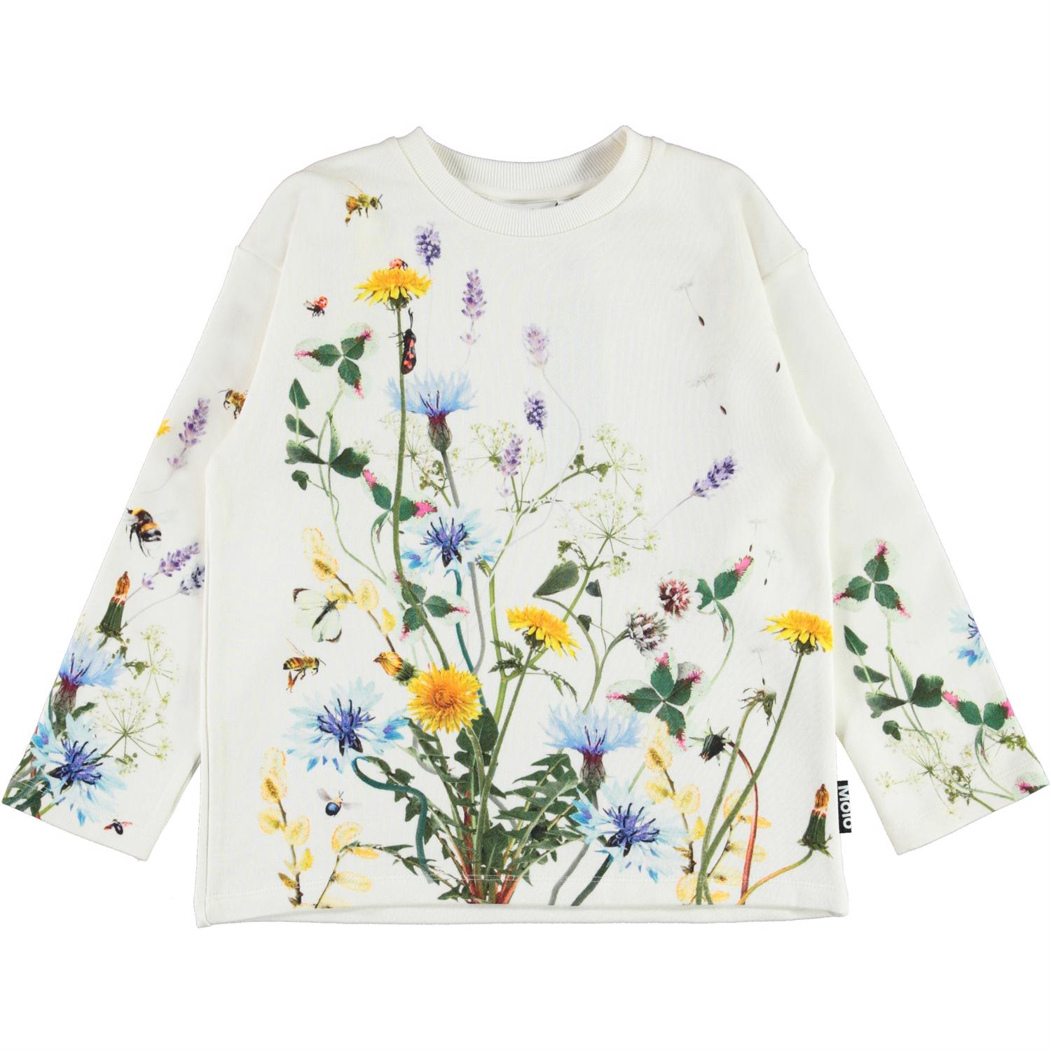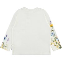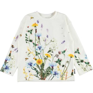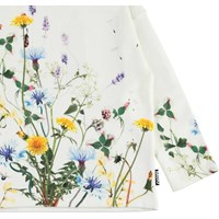 Mountoo ist ein weißes Langarm-T-Shirt mit Drucken von Insekten und Blumen.