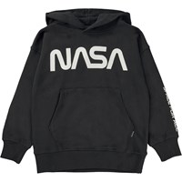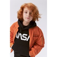 Schwarzer Hoodie mit weißem Frontprint. „NASA“ ist auf der Vorderseite aufgedruckt, während die Botschaft „Space for All“ auf dem Ärmel aufgedruckt ist. Dieser Hoodie besteht aus 100% Baumwolle, hat eine Kängurutasche, Rippbündchen an Ärmel und Hüfte und eine lockere Passform. Kombinieren Sie evt. dieses Sweatshirt mit der Hose Adan in der gleichen Farbe für das perfekte Set.