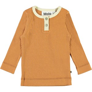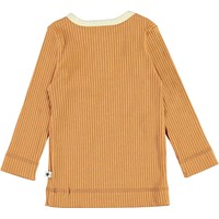 Earth ist ein brauner Babypullover in Rippqualität mit Knopfverschluss und hellgelber Kante am Hals. Kombiniere den Pullover mit einer passenden Hose.