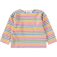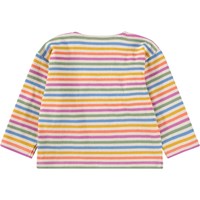 Langärmliges Shirt für die Kleinen, mit Regenbogenstreifen aus Bio-Baumwolle. Es bietet gute Bewegungsfreiheit und hat Druckknöpfe an der Schulter, um das An- und Ausziehen zu erleichtern.