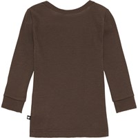 Eli ist ein brauner Babypullover. Der Pullover ist aus 100% Merino Wolle und hat lange Ärmel.