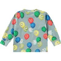 Graue Bluse aus Öko-Baumwolljersey für die Kleinen. Die Bluse bietet gute Bewegungsfreiheit, lange Ärmel und gerippte Bündchen. Sie hat auch zwei Druckknöpfe auf der linken Schulter, was das Anziehen erleichtert. Die Bluse hat einen Allover-Print auf grauem Hintergrund mit Luftballons in verschiedenen Farben.