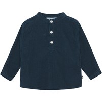 Blaues Hemd aus geripptem Samt für die Kleinen. Dieses Shirt besteht aus 100% Baumwolle, hat lange Ärmel, einen Chinakragen mit Knopfverschluss und Knöpfe am Ärmel für einfaches An- und Ausziehen. Kombinieren Sie evt. dieses Shirt mit der Hose Sois in derselben Farbe.