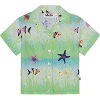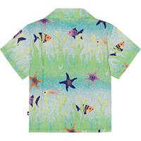 Shirt für die Kleinen aus Öko-Baumwolle. Das Hemd hat einen Kragen und einen Knopfverschluss mit hellen Perlmuttknöpfen, die das Anziehen erleichtern. Das Hemd hat einen Allover-Print des Meeresgrunds in Grün- und Blautönen mit Fischen und Seesternen. Kombinieren Sie das Shirt mit Shorts in der gleichen Farbe und dem gleichen Material und erhalten Sie ein komplettes Set.