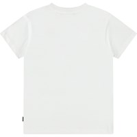 Weißes T-Shirt aus weicher Öko-Baumwolle mit geripptem Ausschnitt. Das T-Shirt hat eine lockere Passform mit einer großen reifen Wassermelonen-Scheibe und dem Text 'One in a Melon'.