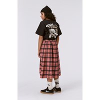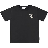 Schwarzes T-Shirt mit Placement-Print auf Vorder- und Rückseite. Der große Print auf der Rückseite besteht aus fröhlichen zweifarbigen Pilzen, die Spaß haben. Sie feiern eine Party und sind ziemlich funky. Oder sollte man "Fungi" sagen? Zwei der Pilze haben so wild getanzt, dass sie auf der Vorderseite des T-Shirts gelandet sind. Was für eine Party! Dieses T-Shirt besteht aus 100% Öko-Baumwolle, hat kurze Ärmel, einen Rundhalsausschnitt mit Rippbündchen und eine lockere Passform.