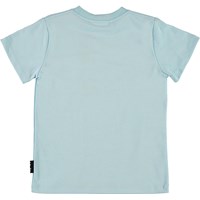 Road ist ein hellblaues Unisex-T-Shirt mit wilden Blumen und Insekten. Das T-Shirt hat einen runden Halsausschnitt.
