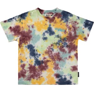 Mehrfarbiges T-Shirt mit Allover-Print. Der Allover-Print ist ein Batikdruck in Blau-, Burgund- und Gelbtönen, darüber gibt es einen Frontdruck in Blau mit dem Text „Out of this World“. Das T-Shirt hat auch einen großen Rückendruck mit 2 Außerirdischen, die glauben, dass Menschen da draußen existieren. Dieses T-Shirt besteht aus 100% Öko-Baumwolle, hat kurze Ärmel, einen Rundhalsausschnitt mit Rippbündchen und hat eine übergroße Passform.