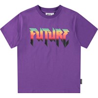 Schwarzes Öko-Baumwoll-T-Shirt mit kurzen Ärmeln und geripptem Ausschnitt. Das T-Shirt hat eine lockere Passform mit weißen Sprechblasen auf der Vorder- und Rückseite mit den Texten "peace", "Now", "You Matter".