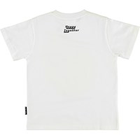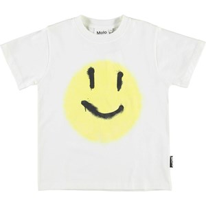 Roxo ist ein weißes Basic-T-Shirt mit einem gelben, gesprühten Smiley auf dem Bauch. Im Nacken ist „Happy Together“ aufgedruckt.