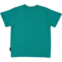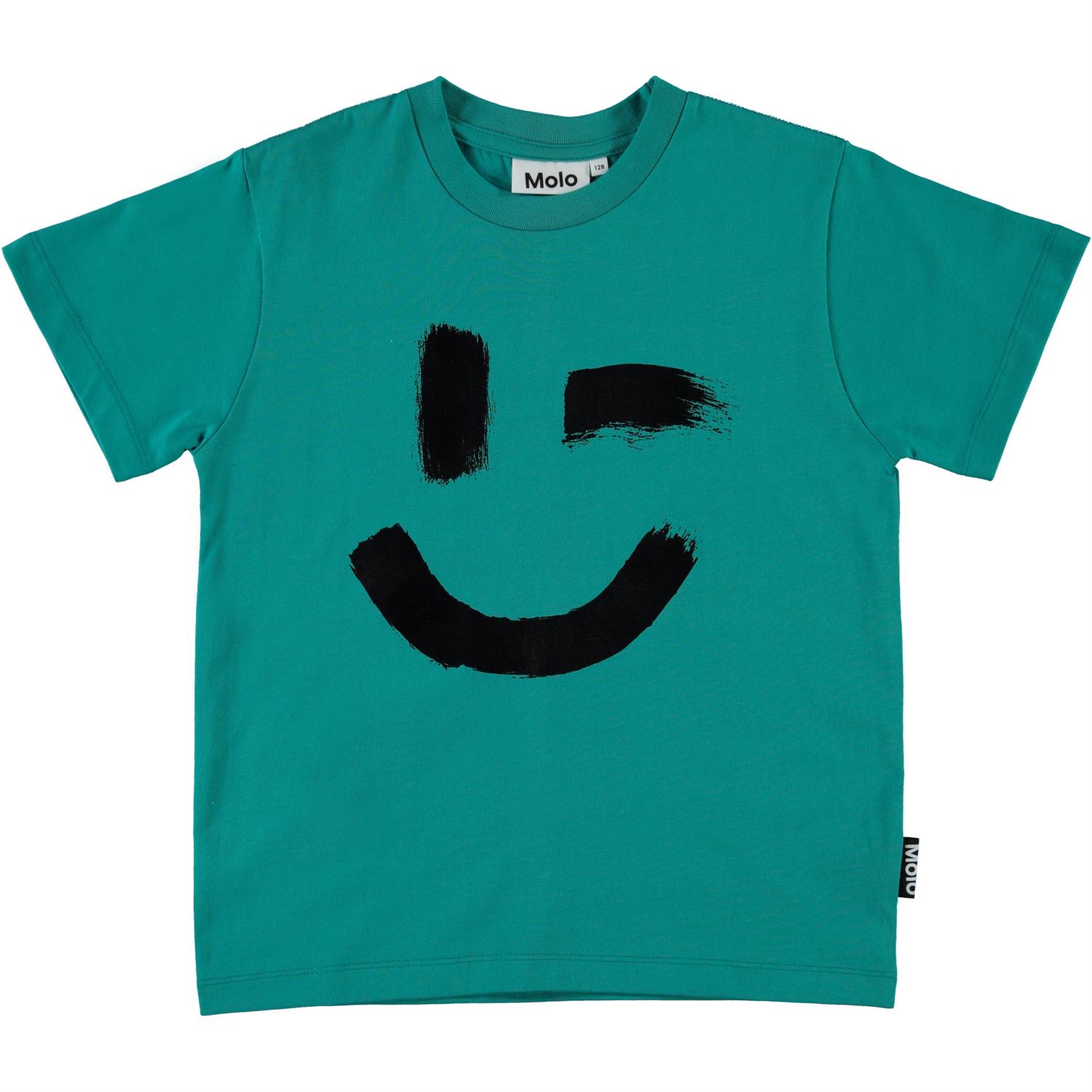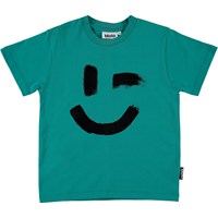 Roxo ist ein grünes Unisex-T-Shirt mit einem Smiley-Print auf der Vorderseite. Das T-Shirt hat einen runden Halsausschnitt.