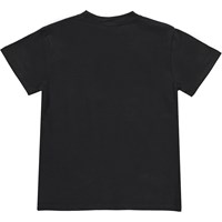 Roxo ist ein schwarzes Unisex-T-Shirt. Das T-Shirt hat einen Rundhalsausschnitt und kurze Ärmel.