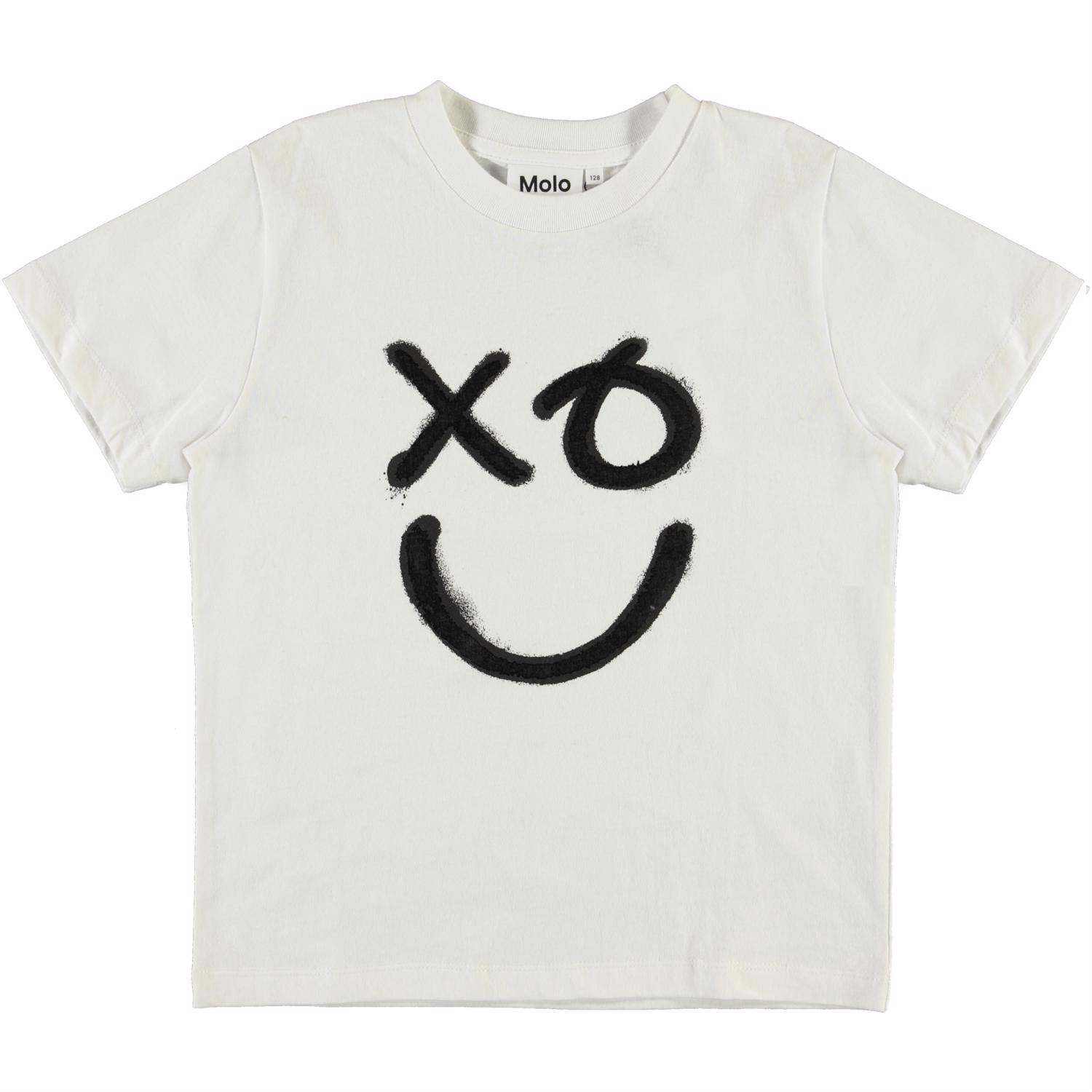 Roxo ist ein weißes T-Shirt mit einem Smiley auf der Vorderseite.