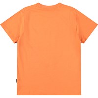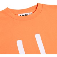 Oranges T-Shirt aus weicher Bio-Baumwolle mit kurzen Ärmeln und geripptem Halsausschnitt. Das T-Shirt hat eine lockere Passform mit einem Aufdruck eines lächelnden Gesichts.