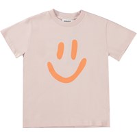 Roxo ist ein rosafarbenes Unisex-T-Shirt mit einem Smiley-Aufdruck. Das T-Shirt hat kurze Ärmel und einen Rundhalsausschnitt.