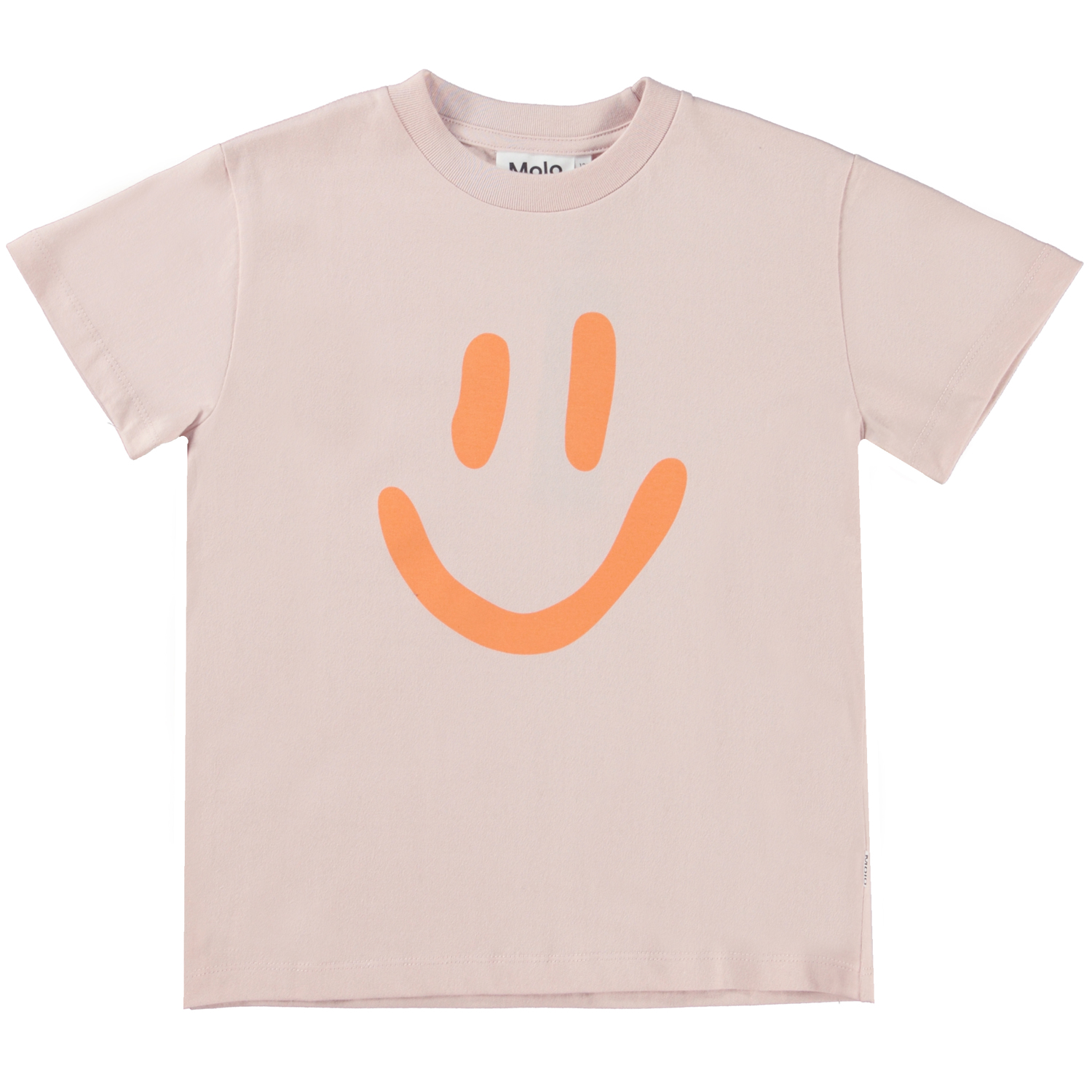 Roxo ist ein rosafarbenes Unisex-T-Shirt mit einem Smiley-Aufdruck. Das T-Shirt hat kurze Ärmel und einen Rundhalsausschnitt.