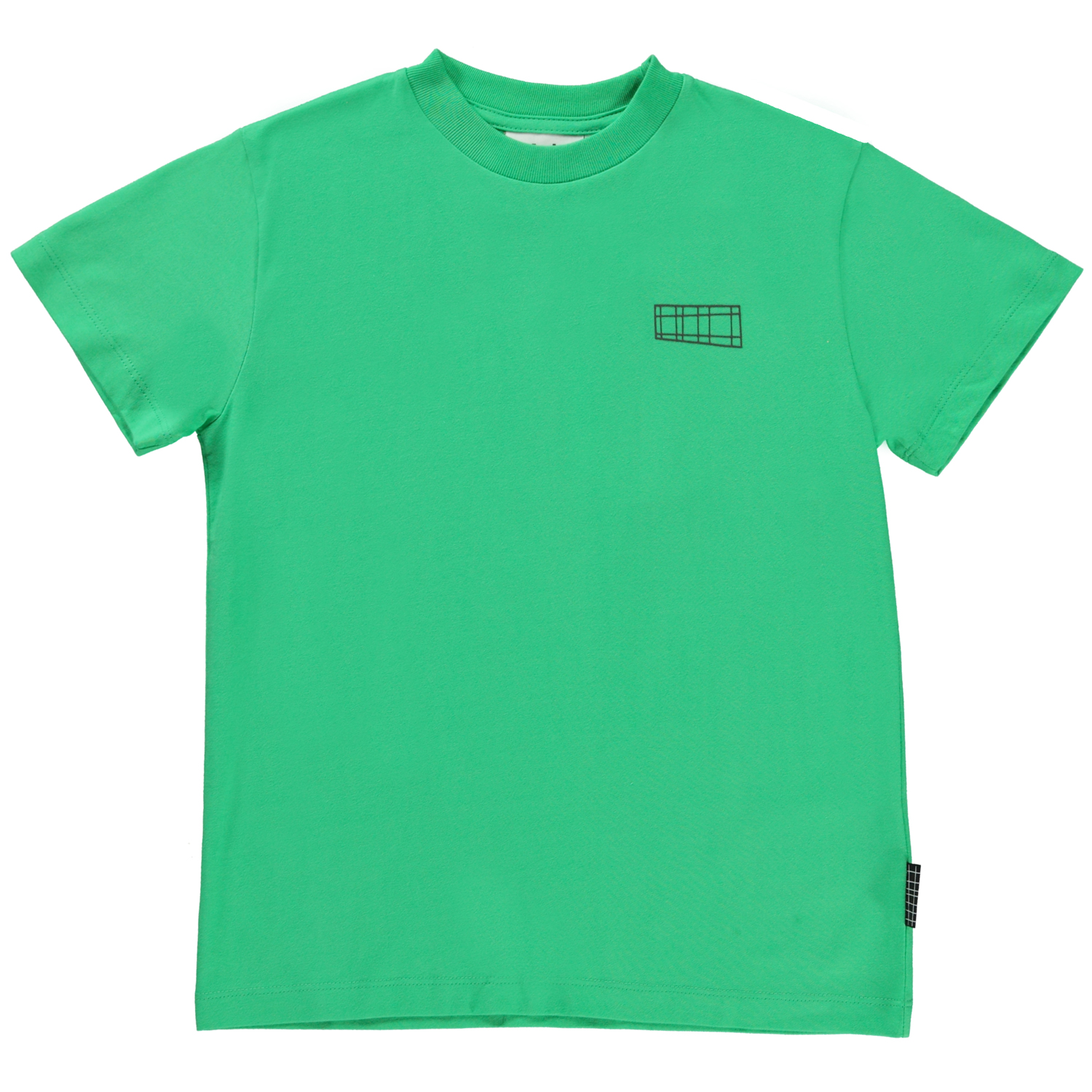 Roxo ist ein grünes Unisex-T-Shirt. Das T-Shirt hat einen Rundhalsausschnitt und kurze Ärmel.