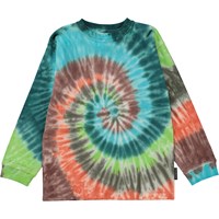 Langärmliges T-Shirt mit Batik in Blau-, Grün- und Schwarztönen. Dieses langärmlige T-Shirt besteht aus 100% Baumwolle, hat einen Rundhalsausschnitt, Rippbündchen an Ärmeln und Halsausschnitt und eine lockere Passform.