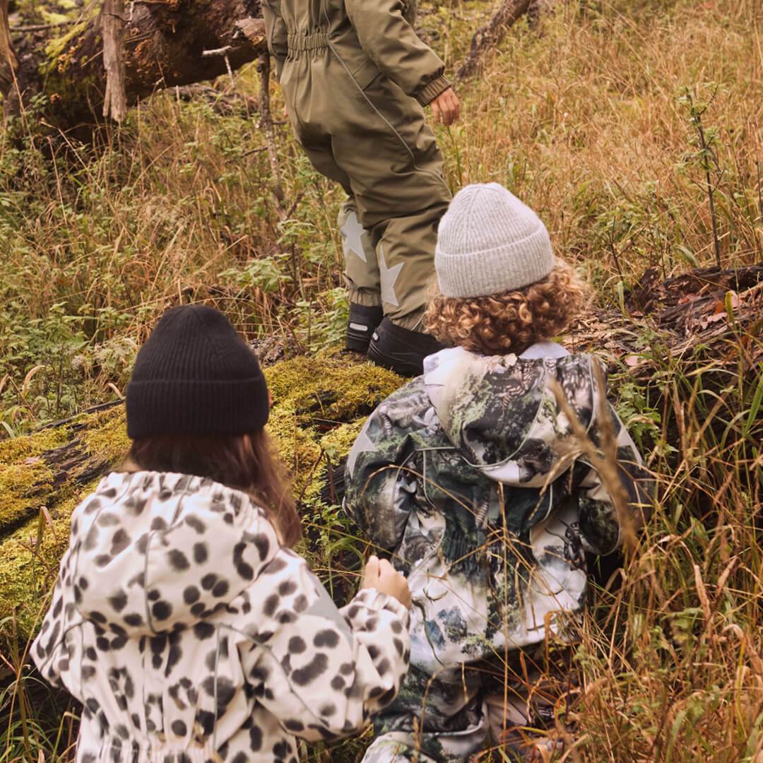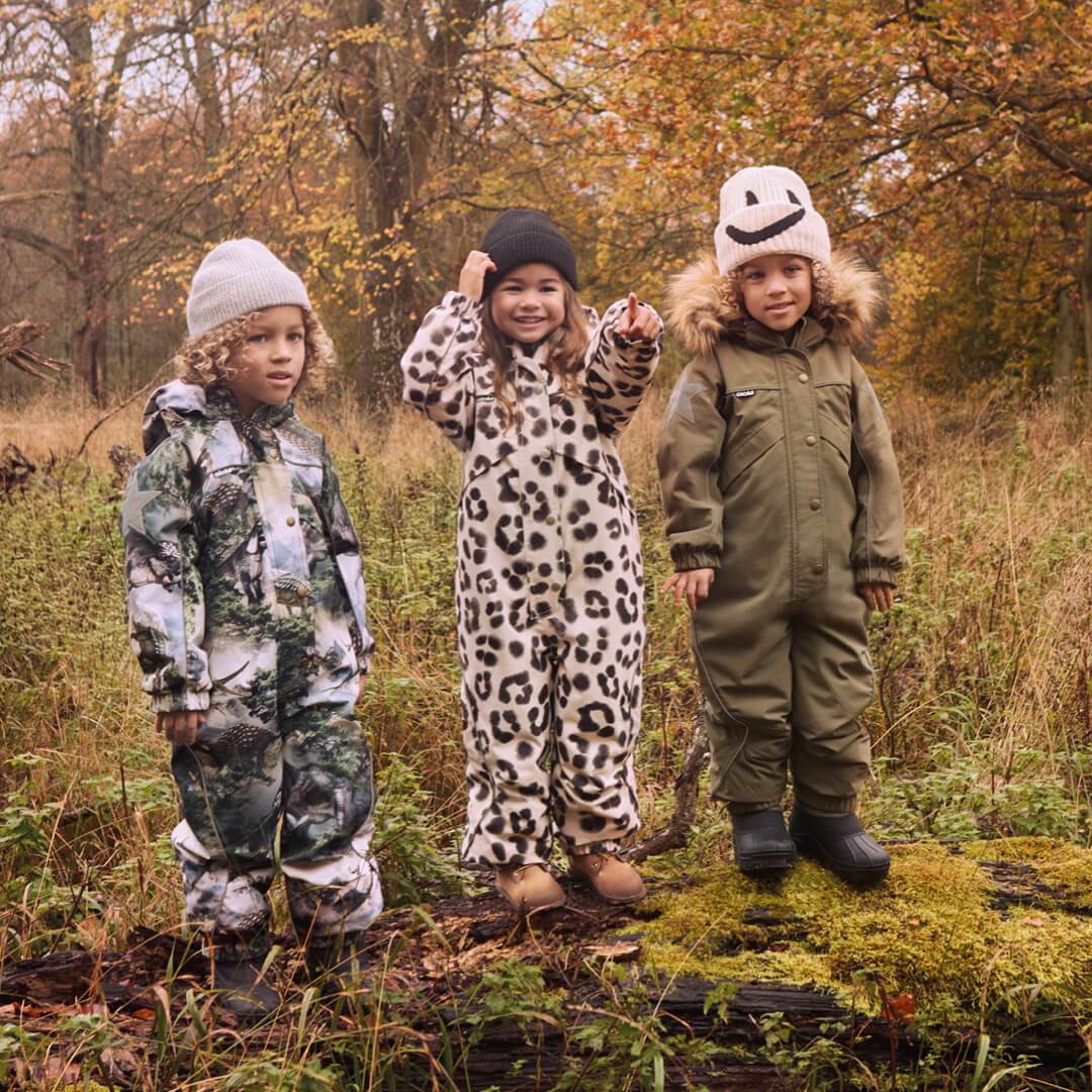 • Bei der Oberbekleidung steht die Funktionalität im Vordergrund, mit praktischen Details wie Stiefelriemen, abnehmbarer Kapuze, verstellbarem Innenkordelzug und zusätzlichem Fleecefutter – alles sorgfältig für optimale Leistung und Komfort konzipiert. Darüber hinaus ist die gesamte Oberbekleidung mit großen Reflektoren und/oder reflektierenden Paspeln ausgestattet, die dafür sorgen, dass Ihr Kind im Dunkeln sichtbar ist.