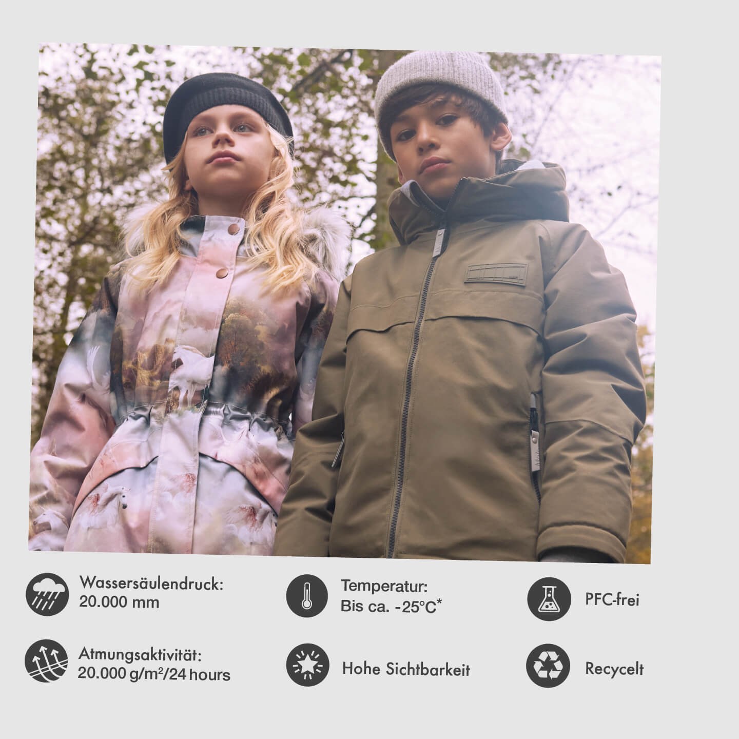 Die Superior Performance-Serie umfasst unsere technischste Oberbekleidung mit außergewöhnlich hoher Leistung in Bezug auf Wasserdichtigkeit und Atmungsaktivität. Maßgeschneidert für Klimazonen mit sehr kalten Wintern und für Kinder, die viele Stunden im Freien verbringen, zeichnet sich diese Serie durch technische Leistung aus und erfüllt die strengsten Anforderungen an Kinderoberbekleidung.