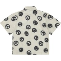 Richie ist ein graues kurzärmliges Shirt mit einem Aufdruck aus Peace-Zeichen und Smileys. Das Shirt hat eine kastige Passform. Kombinieren Sie beliebige das Shirt mit passenden Shorts für ein komplettes Sommeroutfit.