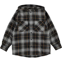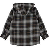 Rizz ist ein kariertes Hemd mit Kapuze. Das Hemd ist braun und grau kariert und hat zwei Brusttaschen.