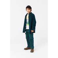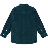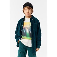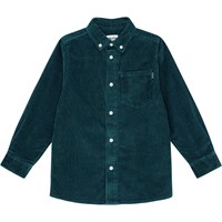 Grünes Hemd aus geripptem Baumwollvelvet mit Knopfverschluss auf der Vorderseite, Button-Down-Kragen, langen Ärmeln mit Manschetten, aufgesetzter Brusttasche und regulärer Passform. Trage das Hemd zugeknöpft oder als Überhemd über einem T-Shirt.