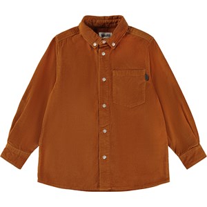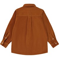 Hemd in gebranntem Orange aus geripptem Samt mit langen Ärmeln. Dieses Hemd besteht aus 100% Baumwolle, hat einen Button-Down-Kragen, eine Brusttasche, einen weißen Knopf und eine Falte auf der Rückseite, die für eine lockerere Passform sorgt. Trage es allein oder offen über einem T-Shirt als Overshirt für einen coolen und entspannten Look.