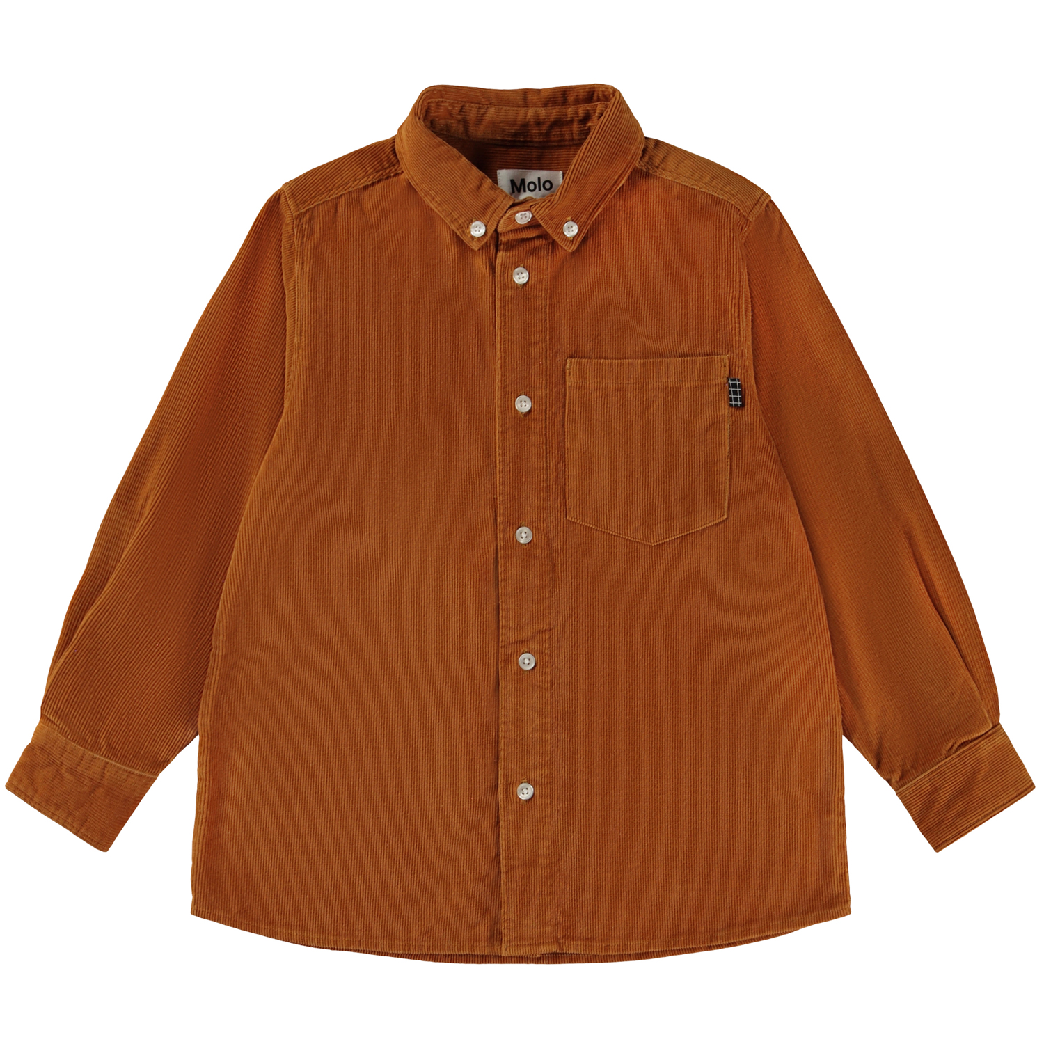 Hemd in gebranntem Orange aus geripptem Samt mit langen Ärmeln. Dieses Hemd besteht aus 100% Baumwolle, hat einen Button-Down-Kragen, eine Brusttasche, einen weißen Knopf und eine Falte auf der Rückseite, die für eine lockerere Passform sorgt. Trage es allein oder offen über einem T-Shirt als Overshirt für einen coolen und entspannten Look.