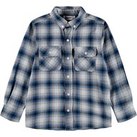 Dunkelblaues und weiß kariertes Baumwollhemd mit Knopfverschluss vorne, Button-Down-Kragen, langen Ärmeln mit Manschetten, aufgesetzten Brusttaschen und einer regulären Passform. Tragen Sie das Hemd zugeknöpft oder als Überhemd über einem T-Shirt.