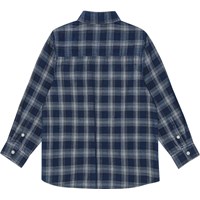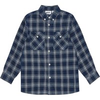 Dunkelblaues und weiß kariertes Hemd aus Baumwolle mit Knopfverschluss auf der Vorderseite, Button-Down-Kragen, langen Ärmeln mit Manschetten, aufgesetzten Brusttaschen und regulärer Passform. Trage das Hemd zugeknöpft oder als Überhemd über einem T-Shirt.
