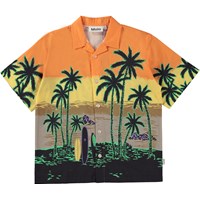 Rui ist ein Hawaiihemd in Orange und Gelb mit einem Aufdruck eines Strandes mit neongrünen Palmen. Das Shirt hat eine kastige Passform und besteht aus Öko-Baumwolle. Kombinieren Sie beliebige das Shirt mit den passenden Shorts für ein komplettes Sommeroutfit.