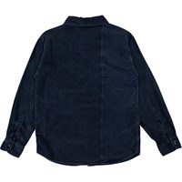 Russy ist ein blaues Hemd aus gewaschenem Samt mit einer Tasche auf der linken Brust. Das Hemd eignet sich sowohl für den Alltag als auch für festliche Tage.