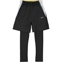Acel sind ein Paar schwarze sportliche Shorts mit langen Tights unten drunter. Die Shorts haben weiße Details an den Seiten mit blauem Paspeln. Acel hat eine breite, elastische Taille und Taschen mit Reißverschluss. Kombiniere diese Shorts mit passender Jacke für einen coolen und bequemen Look.