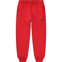 Rote Jogginghose aus Öko-Baumwolle mit einem elastischen Bund und einem innenliegenden Kordelzug, gerippte Bündchen an den Knöcheln, Seitentaschen und eine Gesäßtasche. Die Hose hat eine normale Passform und das Wort "Play" in Schwarz auf dem Oberschenkel gedruckt. Die Hose hat ein gebürstetes Innenfutter, das sie weich und warm zu tragen macht.