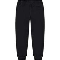 Schwarze Jogginghosen aus Öko-Baumwolle mit einem elastischen Bund und einer internen Kordel, gerippten Bündchen an den Knöcheln, Seitentaschen und einer Gesäßtasche. Die Hose hat eine normale Passform und ein gebürstetes Innenfutter, was sie weich und warm zu tragen macht.