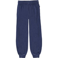 Adani ist eine blaue Frottee-Jogginghose. Die Hose hat einen elastischen Bund und Beinabschluss.
