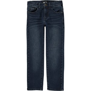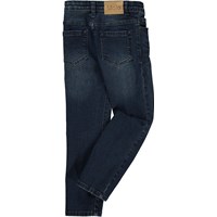 Dunkelblaue Jeans aus Öko-Baumwolle. Diese Jeans haben Stretch, sodass sie viel Spiel ohne Einschränkung zulässt. Sie haben Taschen an den Seiten, Hintertaschen und eine schmale Passform. Die Taille kann mit einem innen verstellbaren Gummiband angepasst werden, sodass es für alle Kinder perfekt passt. Die Größen 92–134 haben Druckknöpfe, sodass die Hose leicht an- und auszuziehen ist – die Größen 140–176 haben normale Jeansknöpfe.