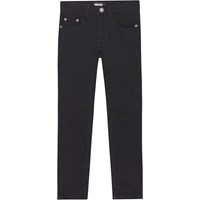 Schwarze Jeans mit Stretch, die viel Spielraum ohne Einschränkung bieten. Sie haben Seitentaschen, Gesäßtaschen und eine schmale Passform. Die Taille der Hose lässt sich durch einen innenliegenden verstellbaren Gummizug verstellen, sodass sie für alle Kinder perfekt sitzt. Die Größen 92–134 haben Druckknöpfe, sodass die Hose leicht an- und ausgezogen werden kann – die Größen 140–176 haben normale Jeansknöpfe.