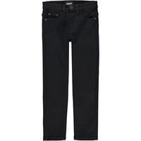 Schwarze Jeans mit Stretch, die viel Spiel ohne Einschränkung zulässt. Sie haben Taschen an den Seiten, Hintertaschen und eine schmale Passform. Die Taille kann mit einem innen verstellbaren Gummiband angepasst werden, sodass es für alle Kinder perfekt passt. Die Größen 92–134 haben Druckknöpfe, sodass die Hose leicht an- und auszuziehen ist – die Größen 140–176 haben normale Jeansknöpfe.