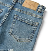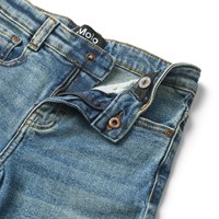 Der Bund der Hose kann mit einem internen Gummiband angepasst werden und sorgt so für eine perfekte Passform für alle Kinder. Größen 92-134 haben einen Druckknopf, der das An- und Ausziehen der Hose erleichtert, während Größen 140-176 einen regulären Jeansknopf haben.