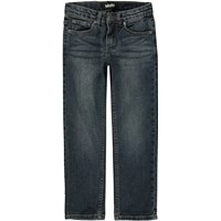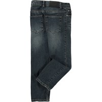 Blaue Jeans mit Stretch. Diese Jeans sind aus Baumwolle, haben Seitentaschen, Hintertaschen und eine normale Passform. Die Taille kann mit einem innen verstellbaren Gummiband angepasst werden, sodass es für alle Kinder perfekt passt. Die Größen 92-134 haben Druckknöpfe, sodass die Hose leicht an- und auszuziehen ist - die Größen 140-176 haben normale Jeansknöpfe.