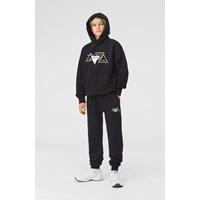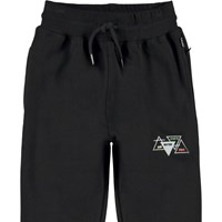 Alvar ist eine sportliche Jogginghose in Schwarz mit Aufdruck der vier Elemente an einer Tasche vorne. Die Hose hat eine breite, elastische Taille und Reißverschlusstaschen.