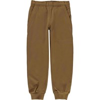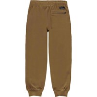 Ame ist eine hellbraune Jogginghose mit Rippbündchen am Knöchel und Gummizug in der Taille. Ame hat mit Doppelnähten markierte Taschen und eine einzelne Hintertasche mit Logo-Patch.