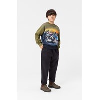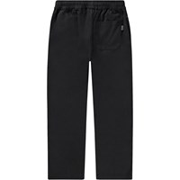 Schwarze Hose aus Öko-Baumwolle mit einem elastischen Bund und einem internen Zugband. Die Hose hat seitliche Taschen und eine lockere Passform.